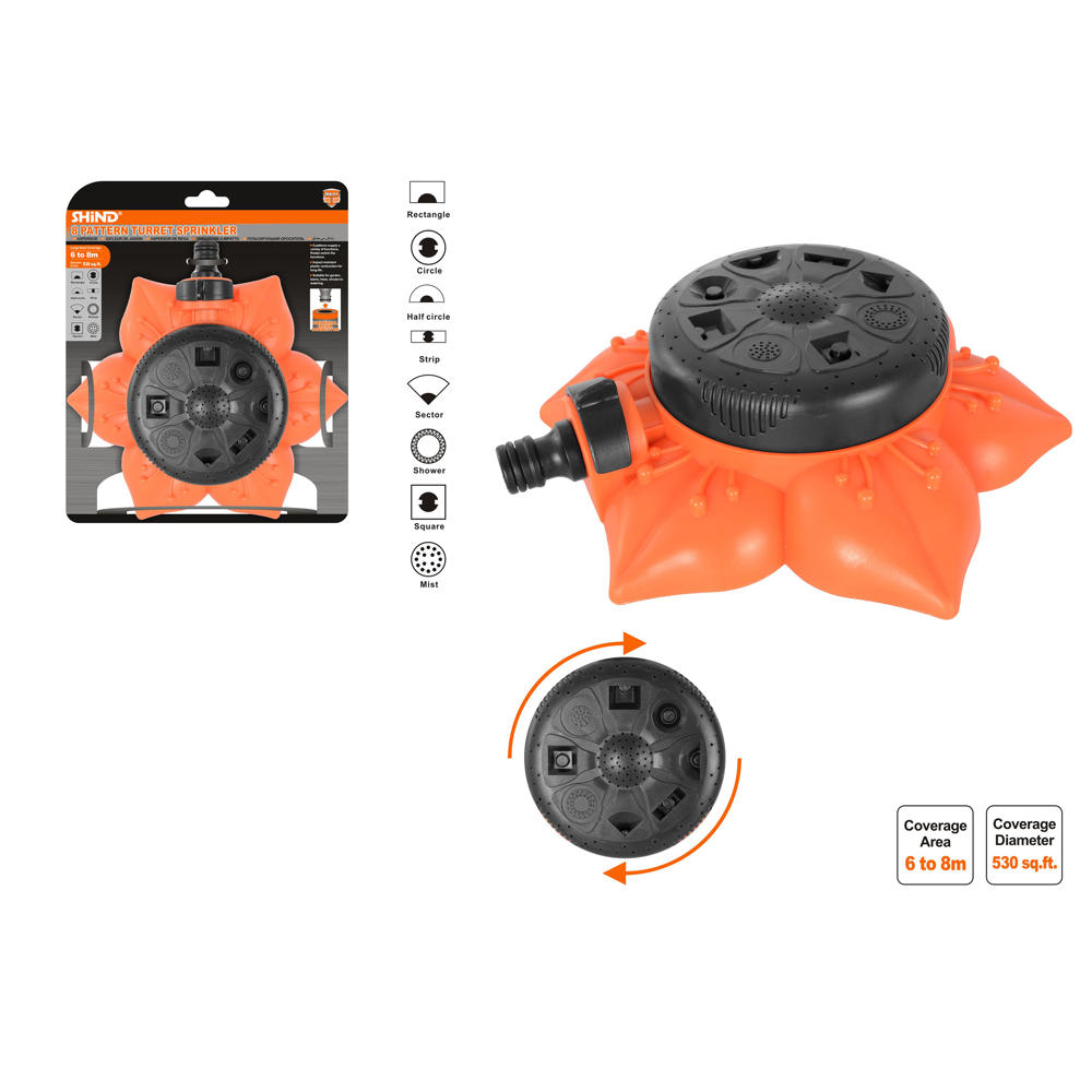 Η καινοτομία αυτού του εκτοξευτήρα βρίσκεται στην ικανότητά του να αλλάζει το σχήμα της δέσμης νερού. Με μια απλή περιστροφή του δίσκου, μπορείτε να επιλέξετε ανάμεσα σε 8 διαφορετικά σχήματα (όπως κύκλο, ημικύκλιο, τετράγωνο, λωρίδα κ.α.), καθιστώντας τον ιδανικό για κήπους που δεν είναι απλά ορθογώνιοι.