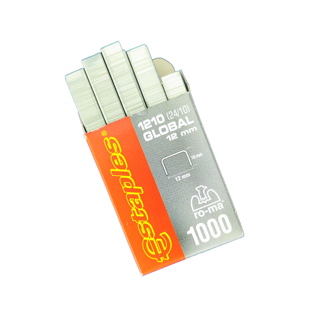 Συρραφίδες μεγάλου μεγέθους 12/10 (με ύψος ποδιού 10mm) σε γαλβανισμένο φινίρισμα. Η συσκευασία περιέχει 1.000 σύρματα υψηλής αντοχής, ικανά να διαπεράσουν παχιά στρώματα χαρτιού ή χαρτονιού, προσφέροντας στιβαρή και μόνιμη συγκράτηση.