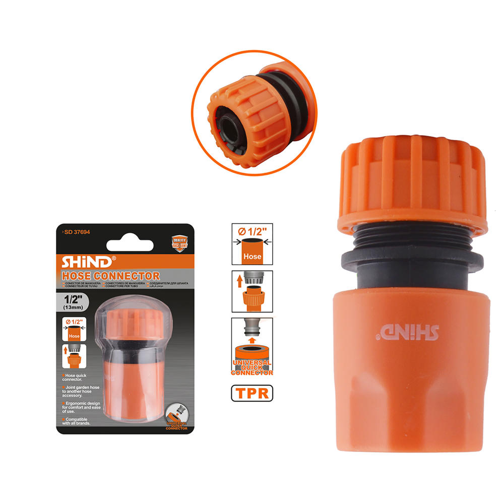 Κλασικός ταχυσύνδεσμος για λάστιχα διατομής 1/2" (13mm). Κατασκευασμένος από υψηλής αντοχής πλαστικό (ABS) ή μέταλλο, προσφέρει γρήγορη, στεγανή σύνδεση και αποσύνδεση με ένα απλό τράβηγμα, εξασφαλίζοντας σταθερή παροχή νερού χωρίς διαρροές.