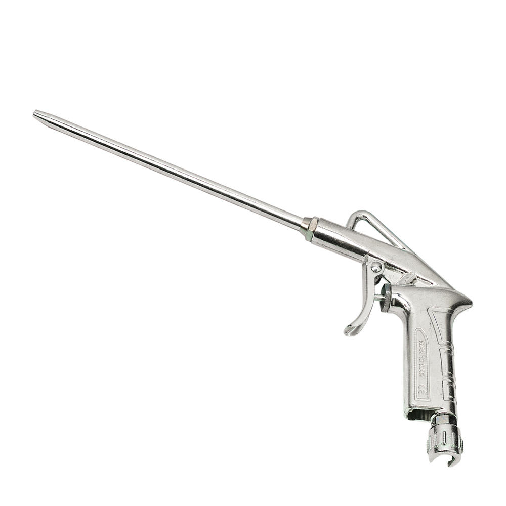 Επαγγελματικό πιστόλι αέρος (φυσητήρας) από χυτό αλουμίνιο υψηλής αντοχής, εξοπλισμένο με μακριά κάνη (περίπου 100mm - 300mm). Σχεδιασμένο για να φτάνει σε βάθος μέσα σε κινητήρες, ηλεκτρικούς πίνακες και στενές κοιλότητες, εξασφαλίζοντας ισχυρή και στοχευμένη ριπή αέρα.
